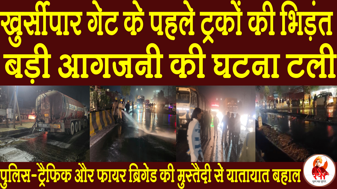 खुर्सीपार गेट के पहले ट्रकों की भिड़ंत, ऑयल टैंकर में लीकेज