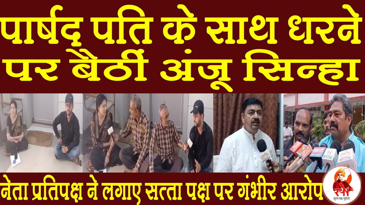 पार्षद पति के साथ धरने पर बैठीं अंजू सिन्हा