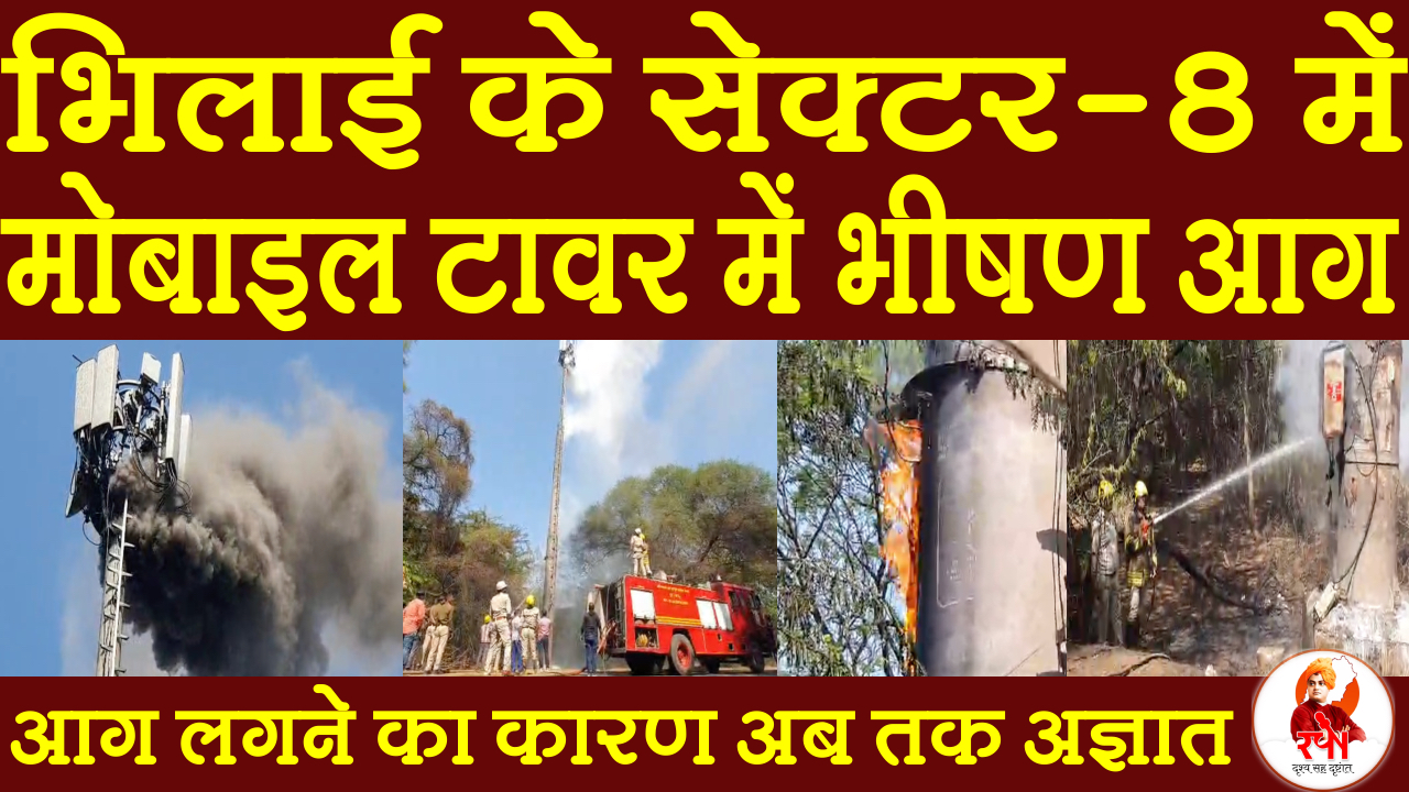 भिलाई के सेक्टर-8 में मोबाइल टावर में भीषण आग