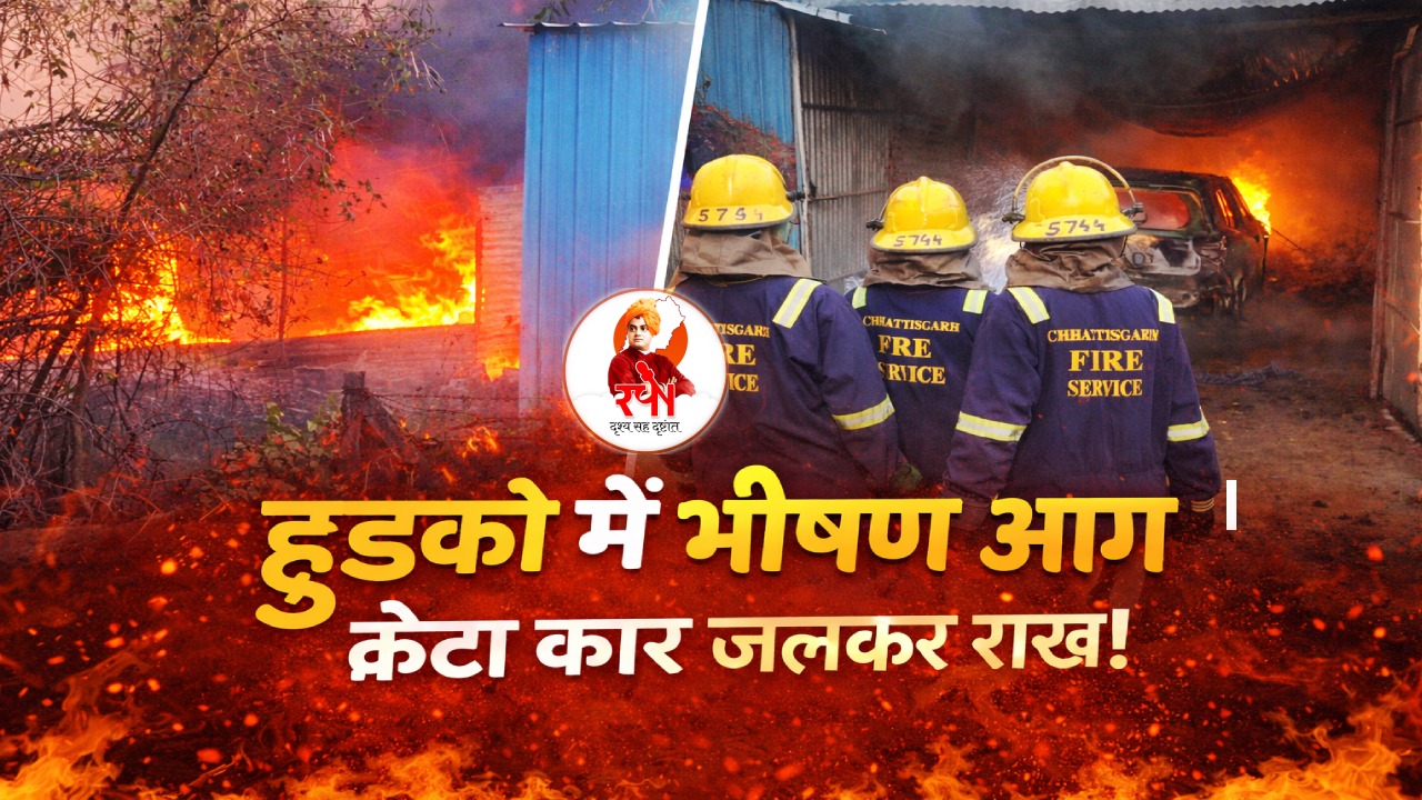 हुडको में भीषण आग, क्रेटा कार जलकर राख!